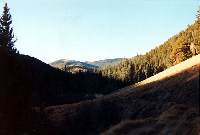 road becomes a dirt road at the Forest Service Boundary. Follow