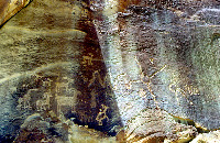 also present. Many of the nicer petroglyphs and pictographs are