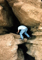 Climbing up and out of a cave