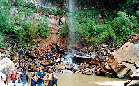 Water from the falls collects in pools and then continues on its journey. Here a second waterfall begins to take shape.